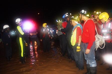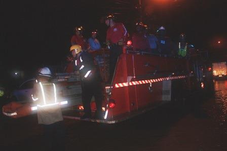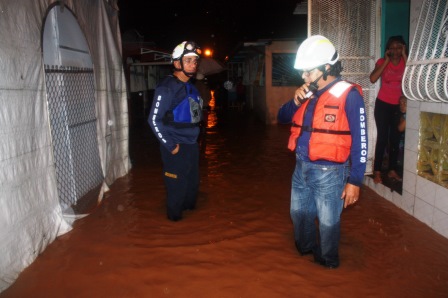Avanzada la noche, el Teniente Coronel Cecilio Callender, Director de DOEXBURE se ocupó del puesto de mando en la calle 1ª. Juan Díaz, donde estuvo coordinando las acciones de rescate en las comunidades con los miembros de las compañías de voluntarios que se sumaron a esta emergencia.