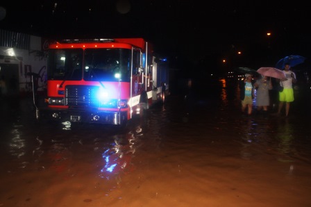 El Benemérito Cuerpo de Bomberos de la República de Panamá, Zona Regional de Panamá, activó hoy  jueves 10 de septiembre, a todas las compañías de voluntarios, Servicio de Atención Médica Pre Hospitalaria y de Rescate -SAMER- y personal de DOEXBURE, para ofrecer la asistencia necesaria en todas las áreas de los distritos de Panamá  que fueron afectados por las inundaciones a raíz de la lluvia extraordinaria que cayó desde el mediodía y que se extendió hasta las siete de la noche y que coincidió con una marea alta de casi 15 pies de altura que inició desde las 2:40 de la tarde.