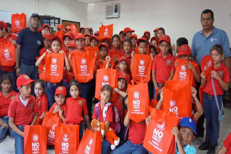 Niños y niñas de la Brigada Infantil del Benemérito Cuerpo de Bomberos de la República de Panamá –BCBRP– de la Zona Regional de Veraguas, recibieron bolsas (NO JUEGUES CON FUEGO) de la Fundación MAPFRE, libros de pintar, y documentación referente a la prevención de incendios y accidentes caseros.