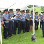 La Banda de Música del BCBRP, entonó magistralmente el Himno Nacional de Panamá y el de Estados Unidos, respectivamente marcando en el ambiente con cada nota musical el recuerdo de más de 5,492 combatientes y trabajadores que forjaron la franja canalera.