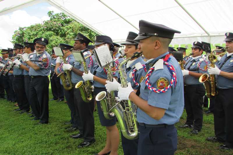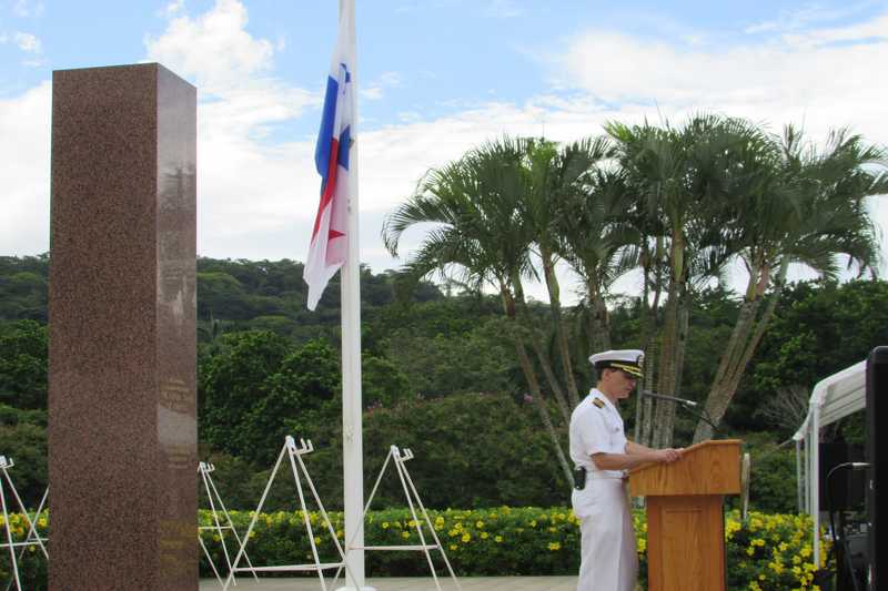 La Banda de Música del BCBRP, entonó magistralmente el Himno Nacional de Panamá y el de Estados Unidos, respectivamente marcando en el ambiente con cada nota musical el recuerdo de más de 5,492 combatientes y trabajadores que forjaron la franja canalera.