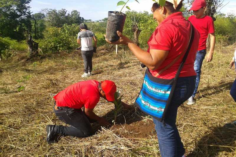 Esta reforestación se realizó en la Finca la Reserva en la comunidad de Las Lomas, como parte de la campaña de conservación del ambiente que lleva el grupo Festival Valle de la Luna.