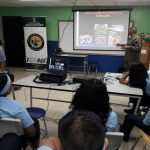 La inducción a los estudiantes fue impartida por el Teniente de SENAFRONT, Roy Paterson, el Teniente Elio Miranda de la Policía Nacional y la Sub Teniente Luisa Uribe del BCBRP.