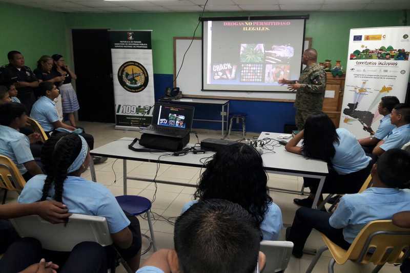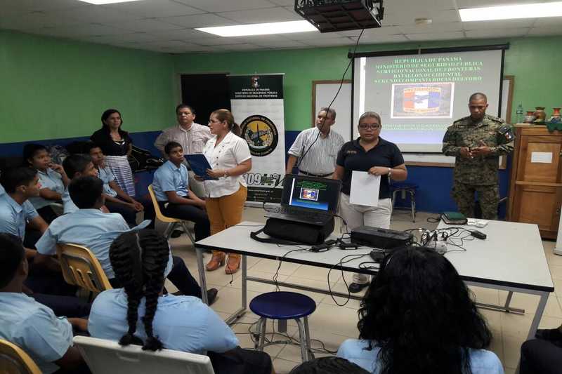 En la comunidad de Las tablas, en la Escuela Primaria y Secundaria Nievecita, personal del BCBRP compartió información con los docentes y estudiantes referentes al uso indebido de drogas, mientras que en el área de Guabito, el Cabo Pablo Maldonado en conjunto con miembros de Senafront y Policía Nacional, orientaron sobre temas de prevención y el uso de extintores contra incendios, con el apoyo de Senadis.