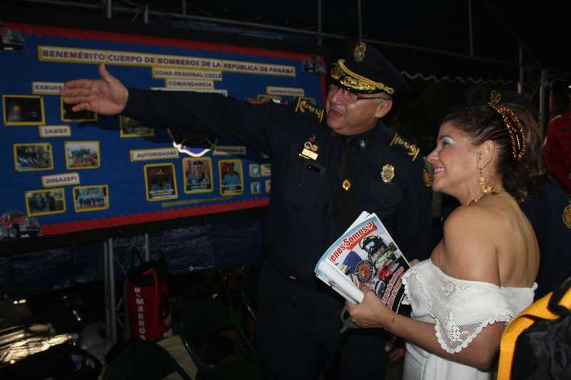 El Coronel Roderick Salcedo, Comandante Primer Jefe de la Zona Regional de Coclé del BCBRP, en compañía de la Licenciada Sugeidys Flores, Gobernadora de la provincia , oficiales, clases y tropas e invitados especiales, realizaron un recorrido por el stand que le muestra a la comunidad el quehacer de los bomberos y las diferentes herramientas que permiten realizar la labor bomberil.