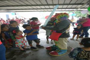 Esta labor social, fue amenizada por payasitos que divirtieron a los infantes y sus familias con sus ocurrencias.