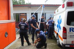 Personal de la Dirección de Operaciones de Extinción, Búsqueda y Rescate (DOEXBURE) del Benemérito Cuerpo de Bomberos de la República de Panamá, Zona Regional de Veraguas efectúa continuas prácticas para su formación, a fin de brindar respuestas rápidas en casos de emergencias.