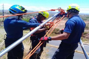 BOMBEROS PRACTICAN TÉCNICAS DE RESCATE EN LADERAS Y RISCOS