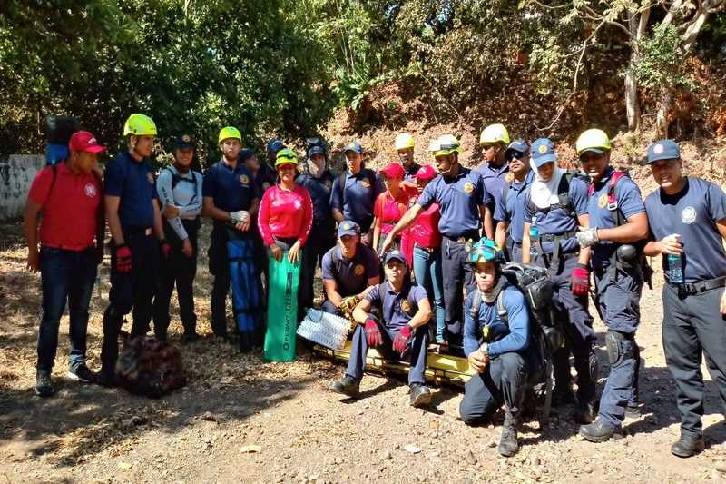 Personal de la Dirección de Operaciones de Extinción, Búsqueda y Rescate (DOEXBURE), que forman parte de la Fuerza de Tarea Conjunta, así como Bomberos Voluntarios y del Servicio de Atención Médica Pre-Hospitalaria de Rescate (SAMER), participaron en este adiestramiento que se realizó en La Loma de los Chicharrones en Chitré.