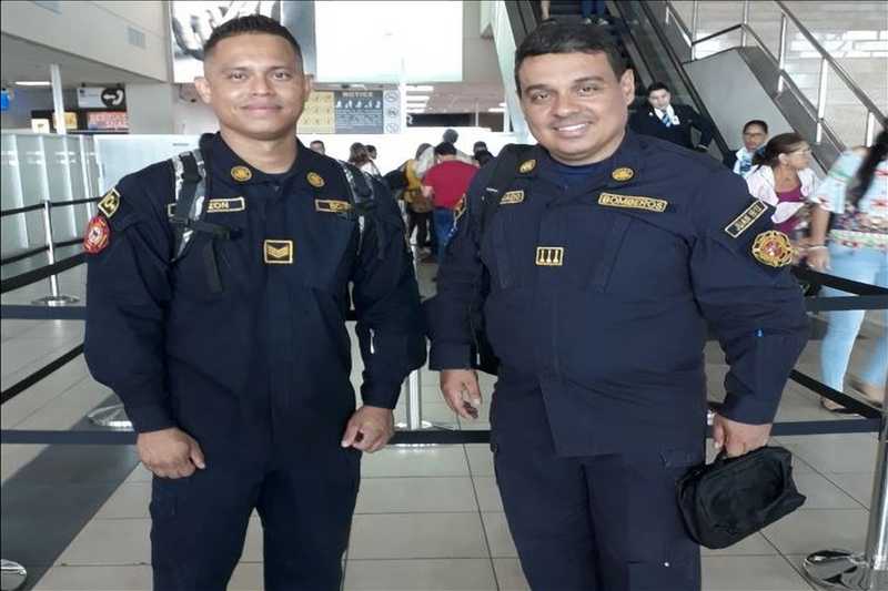 El Capitán Ángel Delgado del Servicio de Atención Médica Pre-Hospitalaria de Rescate (SAMER) y Ulises Pinzón, Sargento de la Dirección Nacional de Operaciones de Extinción, Búsqueda y Rescate (DOEXBURE), participan en este evento.
