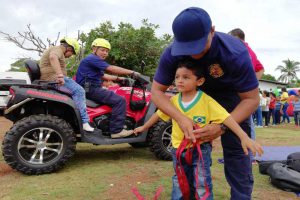 Canastitas, Pintacaras, juegos, trapecios fueron algunas de las atracciones que disfrutaron los niños de las comunidades de Las Cabras en Pesé y de los distritos de La Chorrera y Aguadulce, en los stands del Benemérito Cuerpo de Bomberos de la República de Panamá (BCBRP), durante la celebración del Día del Niño.