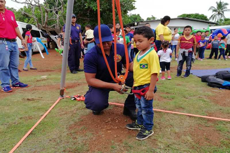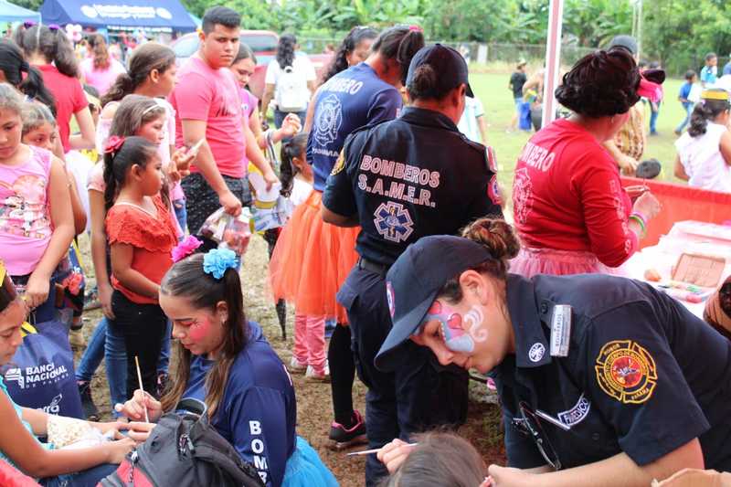 Canastitas, Pintacaras, juegos, trapecios fueron algunas de las atracciones que disfrutaron los niños de las comunidades de Las Cabras en Pesé y de los distritos de La Chorrera y Aguadulce, en los stands del Benemérito Cuerpo de Bomberos de la República de Panamá (BCBRP), durante la celebración del Día del Niño.