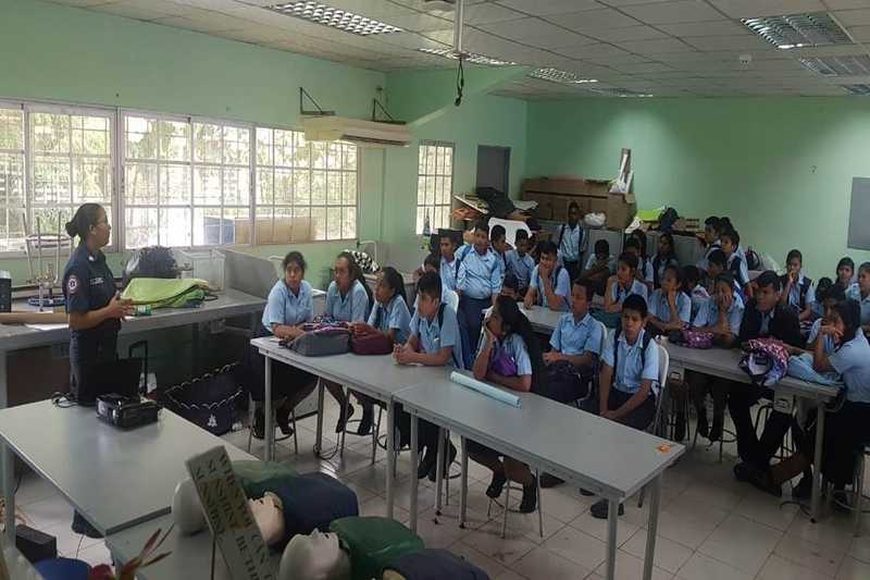 Estudiantes del Instituto Boro en la provincia de Veraguas fueron capacitados en técnicas de primeros auxilios por personal del Servicio de Atención Médica Pre-Hospitalaria de Rescate (SAMER) del Benemérito Cuerpo de Bomberos de la República de Panamá.