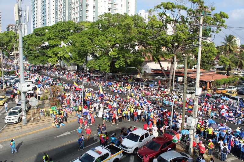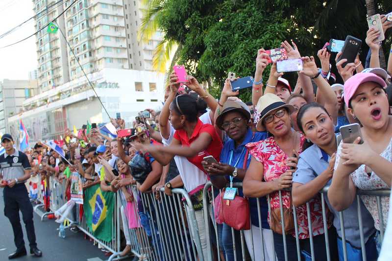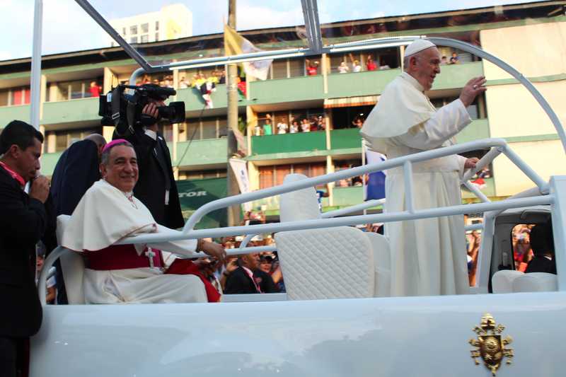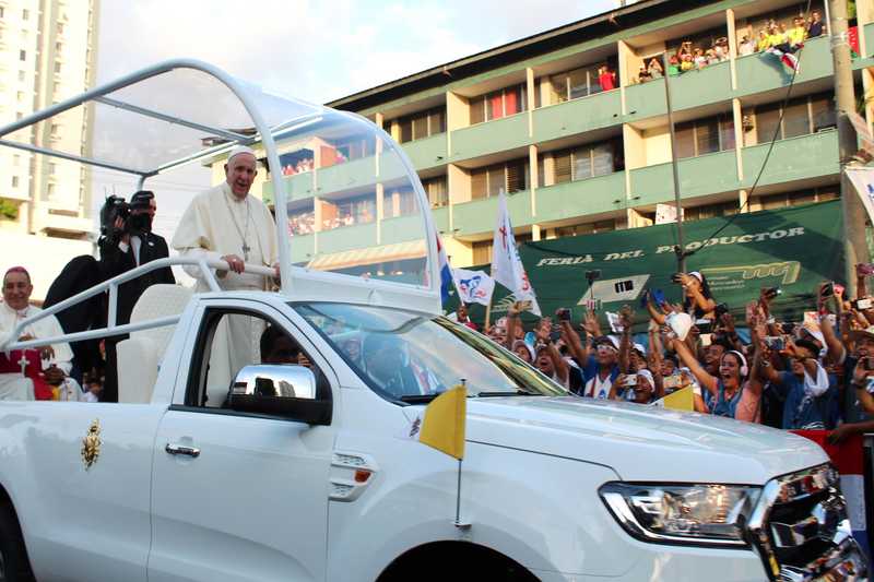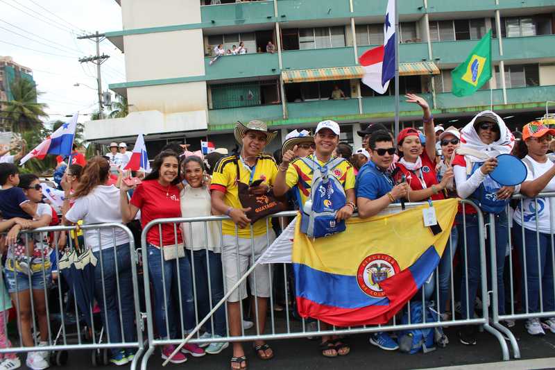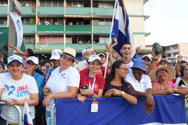 La ruta a utilizar para el traslado del Papa Francisco hacia la Nunciatura fue abarrotada por un centenar de panameños y peregrinos que se encuentran en Panamá por motivo de la Jornada Mundial de la Juventud (JMJ).