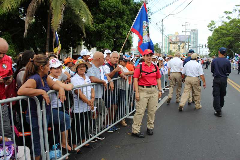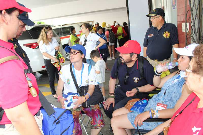 Los camisas rojas a lo largo de la ruta ayudaron a los peregrinos e istmeños con atenciones de primeros auxilios, ubicación de lugares y centros de hidratación.