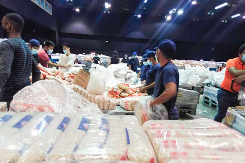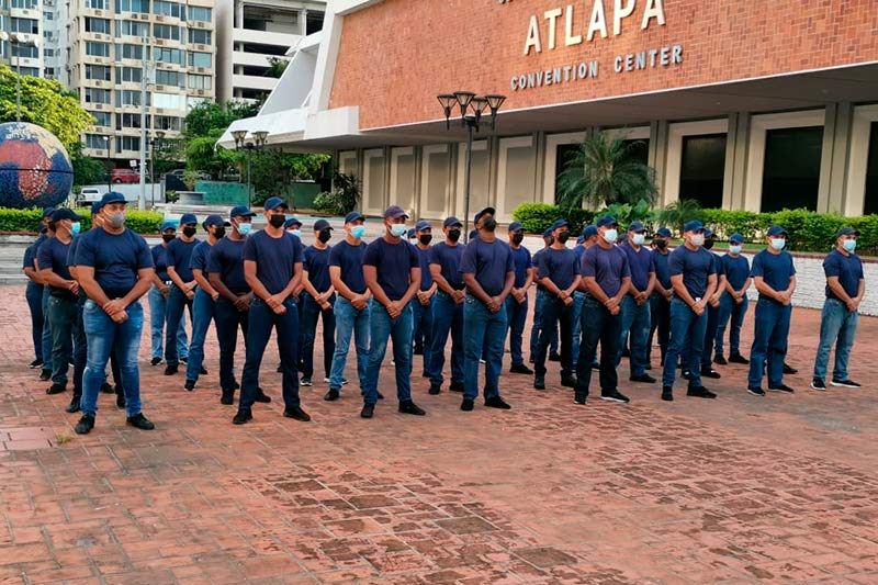 Los aspirantes a bomberos de Extinción, Búsqueda y Rescate apoyaron la elaboración de bolsas de alimentos del programa Panamá Solidario.