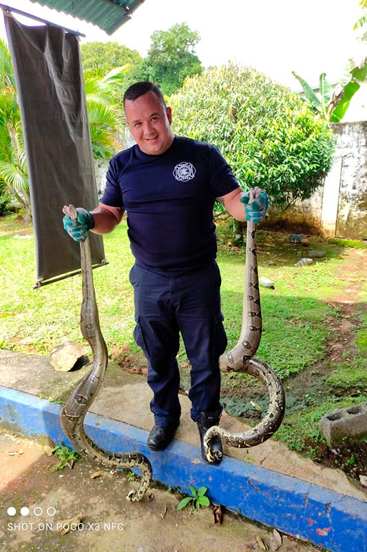 Así continuando con nuestra labor de servir a la comunidad, bomberos capturan dos boas en el patio de una residencia en Villa Esmeralda en Los Algarrobos, en Dolega. Fueron liberadas en su hábitat.