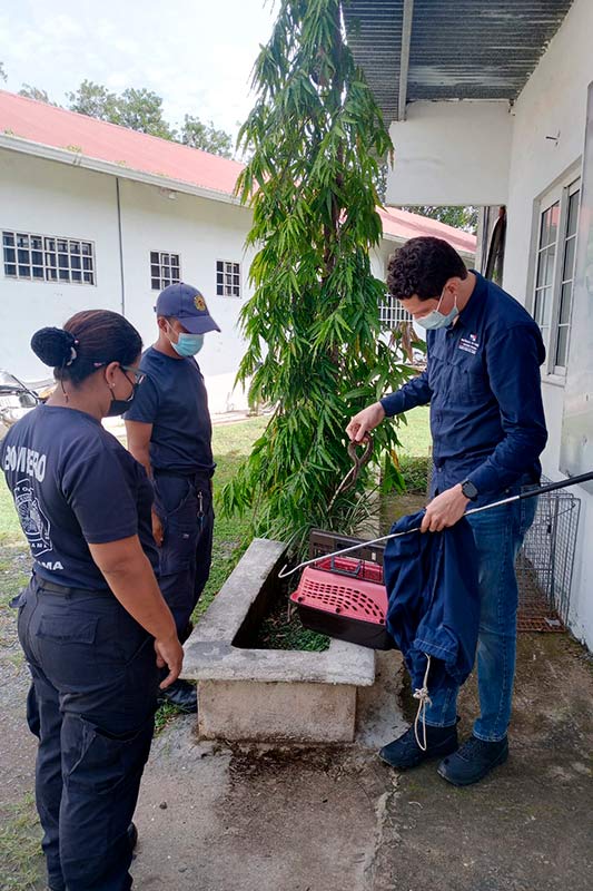 En Veraguas, capturamos ofidio que se encontraba en la parte trasera de la Panadería Ana en Santiago. Fue entregada a personal de Mi Ambiente Pmá. para su reubicación.
