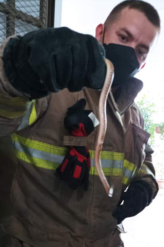En Los Santos nuestros bomberos capturaron una serpiente que se encontraban dentro de una residencia en la barriada Boulevard de Las Tablas. Fue liberada en su hábitat.