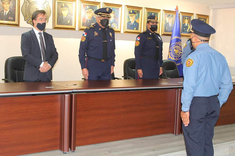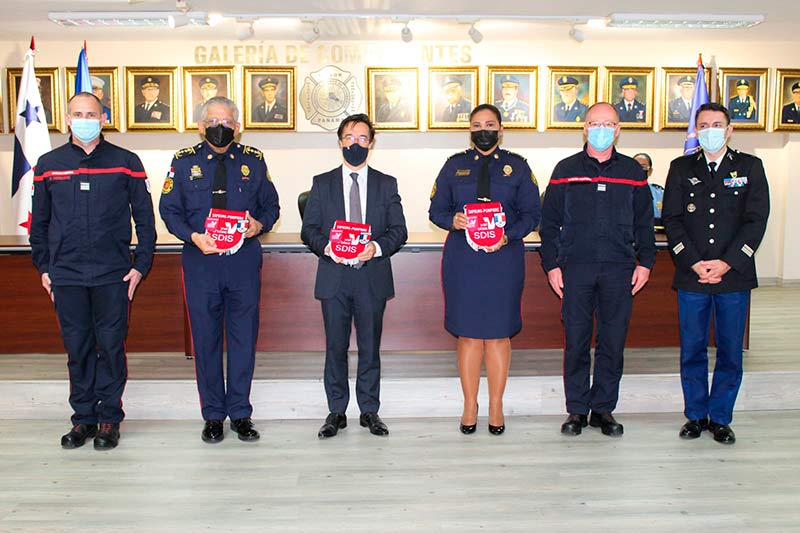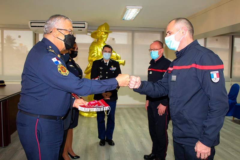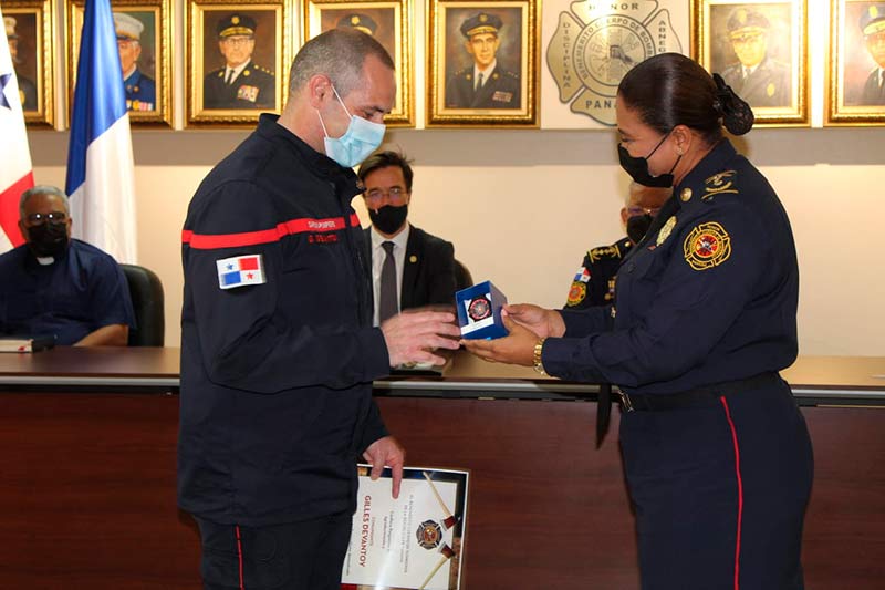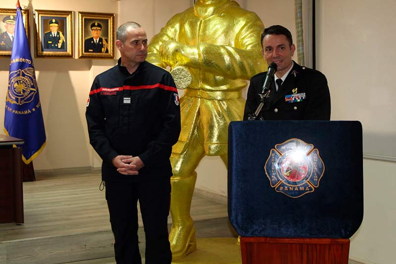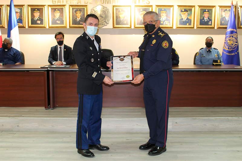 El acto fue presidido por el coronel Abdiel Solís Pérez, director general del Benemérito Cuerpo de Bomberos de la República de Panamá (BCBRP); la coronel Matilde Torres, subdirectora general, y el embajador De Sury D’Aspremont y el teniente coronel Nicolás Parra, Agregado Adjunto del Interior de la embajada de Francia en Colombia.