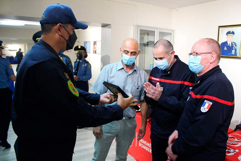 La delegación de bomberos de Francia recibió de manos de las autoridades del BCBRP pergaminos y presentes en señal de agradecimiento.