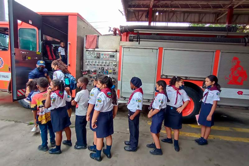El 25 de julio se recibió la visita de 13 niños del Club Asiel de la Iglesia Adventista del Séptimo Día, en la Estación Florencio Arosemena, ubicada en San Miguelito, a quienes se les brindó información sobre prevención de incendios.