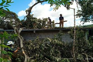 Bomberos de Panamá Oeste realizaron corte y remoción de árbol que cayó sobre el techo de una residencia en Villa Carmen, Capira.