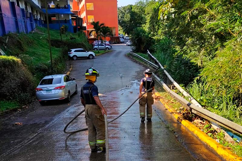 Los bomberos de Panamá Metro apoyan a la Autoridad de Aseo y la Gobernación de la provincia de Panamá en el operativo del programa «Limpiando el Barrio», que incluyó limpieza de puentes peatonales, áreas comunes y parques dejándolos en óptimas condiciones para su uso.