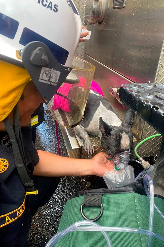 Los bomberos de Panamá Metro respondieron una emergencia por incendio atendido en apartamento del edificio La Granja, ubicado próximo a la Iglesia Don Bosco. En esa emergencia, los paramédicos del BCBRP atendieron un perro que fue afectado por el humo. Se le brindó inhaloterapia.