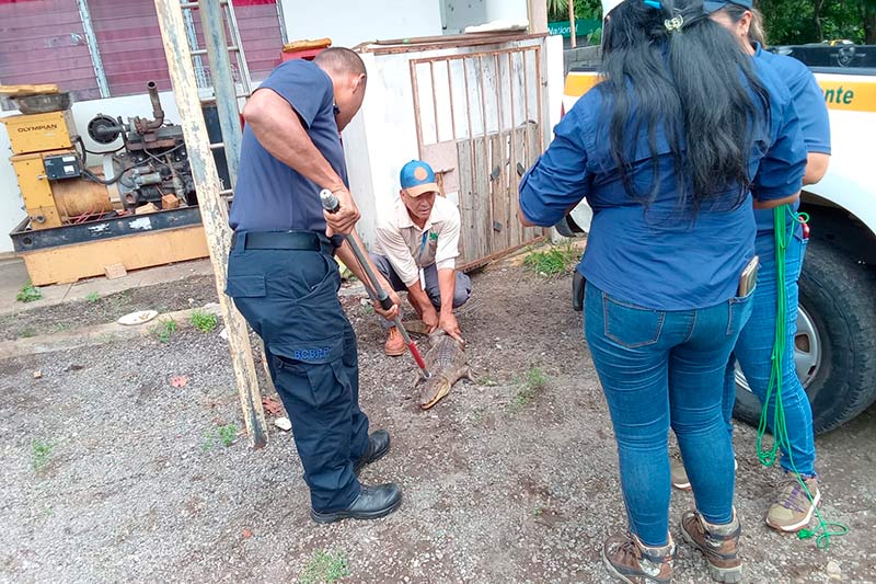 Los bomberos de Chiriquí rescataron un lagarto que se encontraba en una residencia ubicada en la barriada Vista Hermosa, Pedregal. Fue puesto a salvo y entregado al Ministerio de Ambiente.