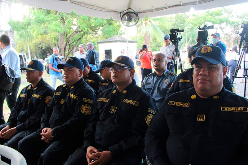 El Cnel. Ernesto De León Echevers, director general del Benemérito Cuerpo de Bomberos de la República de Panamá, y la Cnel. Matilde Torres, subdirectora general, acompañaron al ministro de Gobierno, Roger Tejada, en la Conferencia de Prensa donde se brindaron los detalles del III Simulacro Regional de Respuesta a Desastres y Asistencia Humanitaria, a realizarse en Panamá del 13 al 16 de junio.