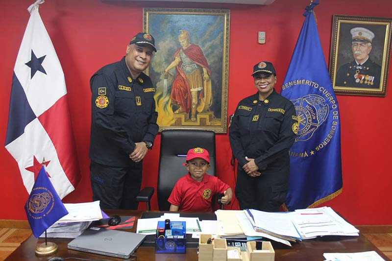 La magia y la alegría se apoderaron de la Estación Ricardo Arango por la visita de David González, ahijado del Benemérito Cuerpo de Bomberos de la República de Panamá (BCBRP) en la Carrera-Caminata “Relevo por la Vida” 2023, que organiza la Fundación Amigos del Niño con Leucemia y Cáncer (FANLYC).