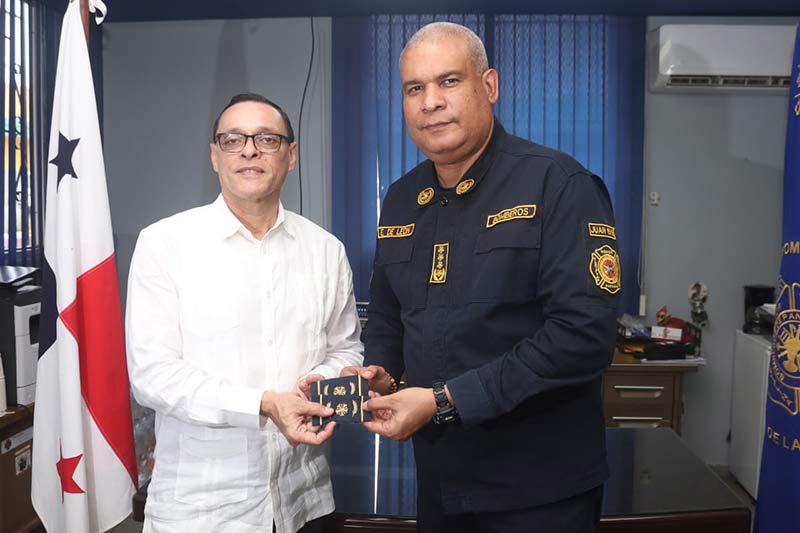 Acompañaron al Cnel. Ernesto De León Echevers, el comandante, primer jefe de la Zona Regional Herrera, el Tte. Cnel. Jean Jesús Daley Rose, el mayor Liborio Montenegro, director nacional de Seguridad, Prevención e Investigación de Incendios.