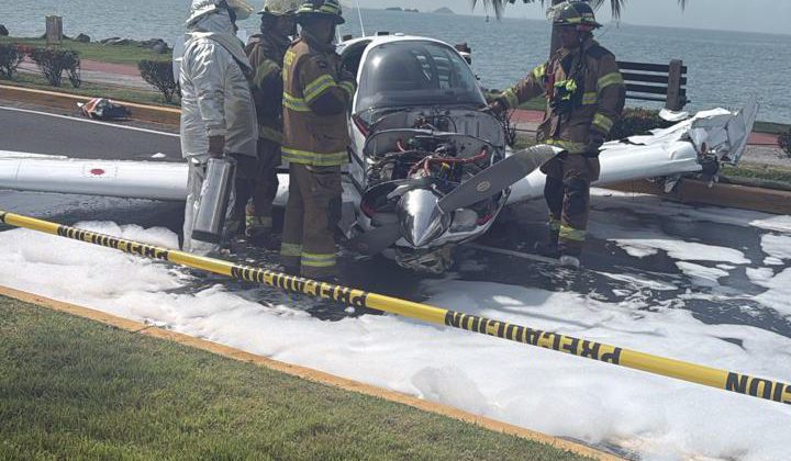 AVIONETA SE PRECIPITA EN LA CALZADA DE AMADOR SIN DEJAR HERIDOS; BOMBEROS CONTROLAN DERRAME DE COMBUSTIBLE